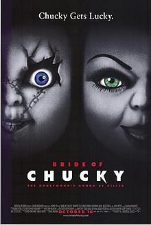 BRIDE OF CHUCKY (FILM)Release Date: October 16, 1998 (Contemporary Setting; one month after Child’s Play 3)Series: Child’s PlayHorror Crosses: Friday the 13th; Halloween; A Nightmare on Elm Street; Texas Chainsaw MassacreThe Story: Tiffany, the girlfriend of serial killer Charles Lee Ray, steals the doll and performs the ritual to place his soul back inside it. The plan is to find a human for Chucky to inhabit, but when the couple have a fight, Tiffany resolves not to help him. As revenge, he performs a ritual to trap her in a doll, knowing this will force her cooperation. And it does, as the two seek out a young couple to possessNotes: Chucky is brought in by the Katrina Protocol. This film occurs between Child’s Play 3 and Seed of Chucky. At the evidence locker where the Chucky doll is kept, are also the masks of Jason Voorhees and Michael Myers, the glove of Freddy Krueger, and the chainsaw of Leatherface. This brings Halloween into the Horror Universe. The others have already been brought in. Even though it was meant as a quick prop gag, this quick film moment connected five of the most famous modern horror icons. This film has been referenced as fictional and paid homage to numerous times in other films and on television. It was also spoofed on the Roseanne Show.