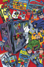 1969--BATMAN'66 # 30--All good things must come to an end, alas, and this week marks the final issue of the regular Batman '66 title. But its a phenomenal way to go out. This issue, written by Lee Allred with art by his brother and sister-in-law Mike and Laura Allred, is everything you'd expect from the wonderful oddness attached to the Allred name, as the story finds a way to put all those random funky images from the opening credits from the TV show and works them into a story. The basic plot is simple: Joker, Penguin, and Catwoman have set up a convention for all of Gotham's villains. All except Riddler, who they're just sick of because he "might as well be working with Batman" giving away their crimes. So, of course, Riddler decides to send clues to the police about the location out of spite, so this might not have been the best villainous plan. Arriving at the movie studio where the convention is taking place, Batman and Robin work their way through a gauntlet of villains, with the different images from the credits representing the defeat of the villains. The Batmobile gets a remote controlled spotlight moment, and Batgirl sweeps in for a last minute save. Pretty much every villain from the series, and most of the new ones introduced in the comic, pop up in the villainous crowd scenes, and some make their first appearance, like King Cobra (who's in the opening credits but never in the show or this comic before) and (despite being unmasked the whole time), the Terrible Trio, If that weren't enough cameos, as Batman and Robin climbing the studio, they find a legitimate meeting going on, and out of the window pop... Perry White, Lois Lane, and Jimmy Olsen right out of the classic George Reeves Superman TV series, and the final press conference also happens to have Clark Kent, Billy Batson, Jack Ryder, Vickie Vale, Nelli Majors (a reporter from an episode of the TV show), and "Ritt Bried" since they can't use Britt Ried, the Green Hornet, without the license. It's a great send off to a fun series. This isn't the last we'll see of this universe, with Batman '66 Meets the Mn from UNCLE starting this week, and Batman '66 Meets the Avengers (the Steed and Peel ones), already announced, but for now, I'm glad this big, flashy issue is the final on.