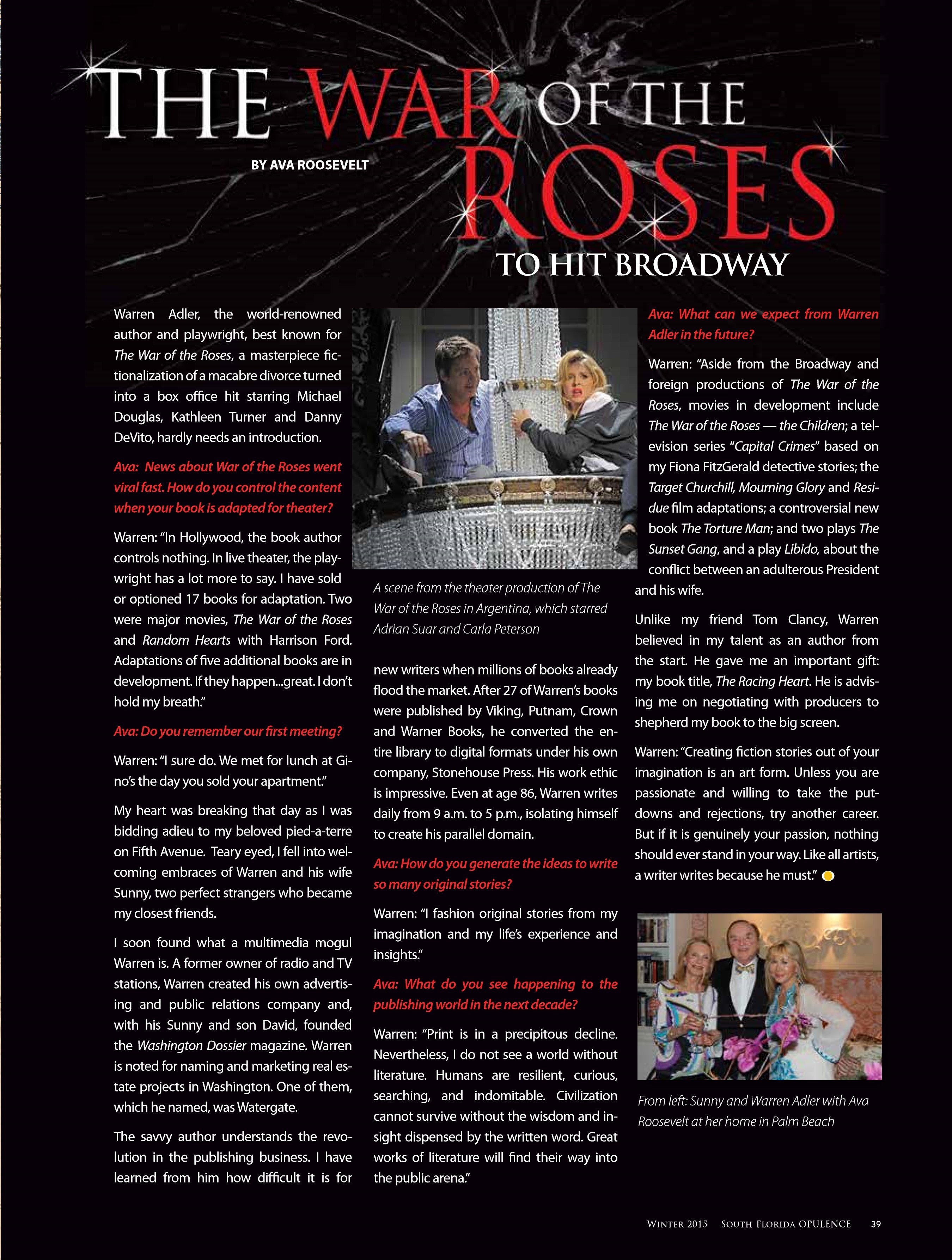 Warren Adler. Alex McAulay is also writing the screenplay for THE WAR OF THE ROSES: THE CHILDREN, the long-awaited sequel to the original film, to be co-produced with David Permut of Permut Presentations. McAulay is well-known for his work on HBO EASTBOUND & DOWN and is currently writing a pilot in collaboration with writer and producer