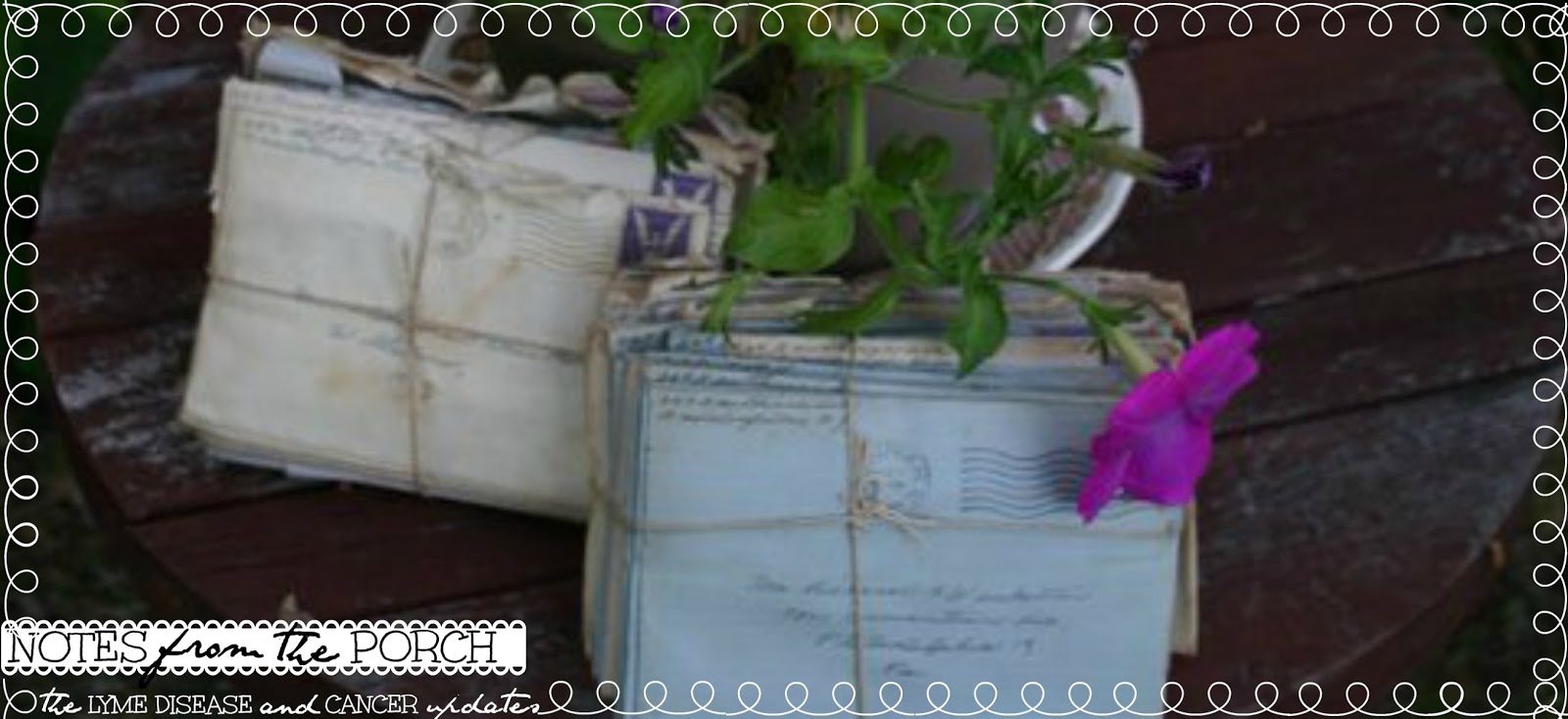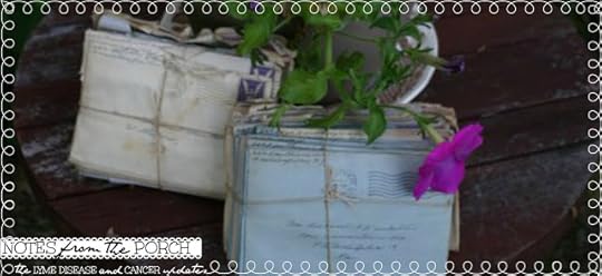 As I mentioned in my last Notes from the Porch update, these past several months since March 13th (when "Nic the PICC" developed a serious and life-threatening blood clot) have been intense, difficult, and have provided lots of changes to my fragile system. Since March 13th I have dealt with thirteen different medicine changes, added additional supplemental therapy that required us to travel over three hours several times a week to receive, started a new "mini-round of treatment" to prepare for the "Mort the Port" being placed (yes, that is the only name I could come up with so I am open for suggestions *smiles*), and have tried to take one day at a time. *smiles*