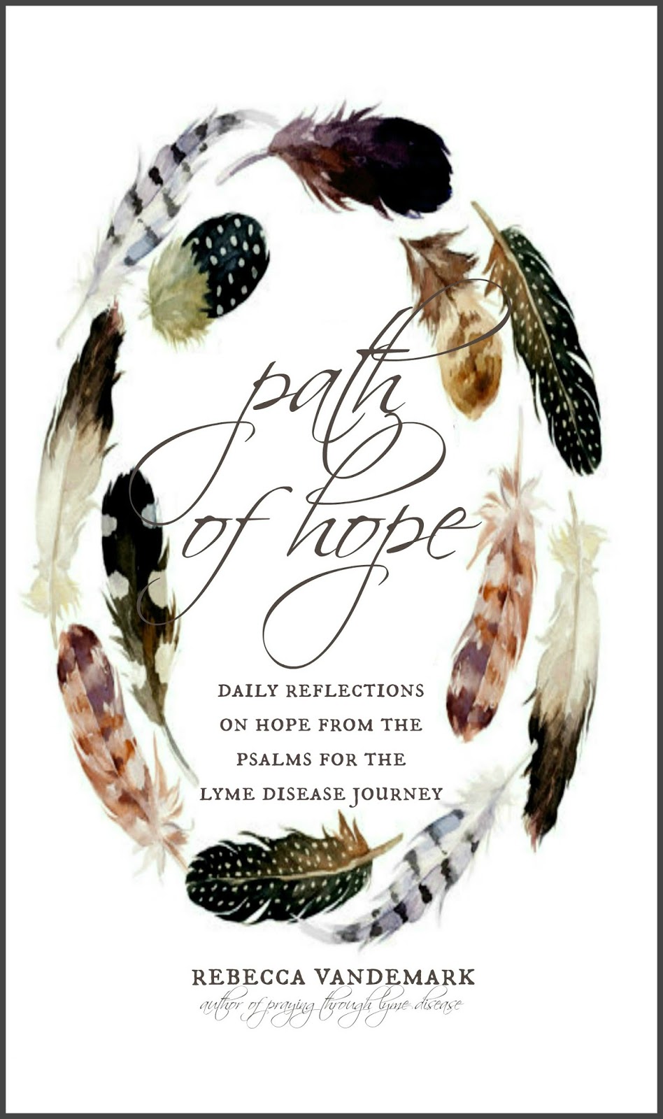 “Path of Hope”, written by Rebecca VanDeMark, is a thirty-one topic prayer and reflection devotional for those fighting Lyme Disease and their loved ones specifically addressing the topic of hope. Spoken from a heart of compassion and understanding, Rebecca understands the Lyme Disease journey well as she saw over 273 medical practitioners before being correctly diagnosed with Advanced Late Stage Lyme Disease.