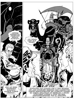 Hoy dibuja: Fernando BaldóYo tendría entre diez o doce años, cuando junto la revista Anteojito comenzaron a publicar una colección modestamente llamada "La Historia Universal de Carl Grinberg". Como buen niño nerd que era, arduo lector de "Muy Interesante" y "Conozca Más", me fasciné efímeramente con la colección. Pero no con cualquier tomo: las guerras en el desierto era lo que buscaba. Recuerdo leer con fruición las aventuras de Aníbal, el gran general cartaginés. Yo era "hincha" de Aníbal, era mi ídolo. No sé por qué, supongo que porque tenía a los romanos como enemigos, como Asterix. Poco tiempo después encontré los tomos dedicados al Al Andaluz y el desarrollo de las ciencias que se posibilitó cuando las Tres Culturas (arábiga, judía y católica) se encontraron en la península ibérica a fines de la edad media. Y ahí me quedé un buen rato, leyendo sobre el Rey Alfonso el Sabio, la escuela de Traductores de Toledo y especialmente, sobre los autómatas. La sola idea de que en aquella época, en base a los nuevos conocimientos de relojería y mecánica, se fabricaran humanoides capaces de moverse y ejecutar tareas simples me fascinaba. Aquel interés se renovó de inmediato en cuanto comencé a pensar algo para mandar al concurso de Tres Culturas. Luego, el jurado nos eligió. Así que pronto podré envolverme en las tormentas de arena del Magreb, con enormes autómatas guerreando nazis entre los médanos, aliados a un Rommel desertor, en esta ucronía fantásticamente dibujada por el gran Baldó. Es un gusto encarar un nuevo proyecto junto a Fernando, con un nuevo premio a cuestas. Luego de tantos años de colaboración, este será nuestro primer libro juntos.