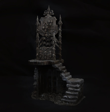 There the gold-cursed spirts clamber across hills and plains, dunes of cursed gold piling in drifts, driven by cataclysmic winds from a curse-lashed sky. Wild cracks and shattermarks of varicoloured lightning crash between acidic clouds, typhoons of smoke and ash roll across the burnished land and when they briefly clear, black aurora melt and skitter across the welkin like hallucinations.