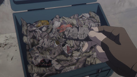 We find this out along the way in a range of neatly implied ways - the children’s school uniforms which look like early 20thC ritualised European school uniforms with braces, ties, garters for the socks - then we find out that these are daily-extruded plastic/paper hybrid all in one coverings with just those elements pictured or embossed on the fabric. We didn't see this because its an animation and we can't see the texture of cloth, and the teens don't know how strange it is because its all they've ever known.