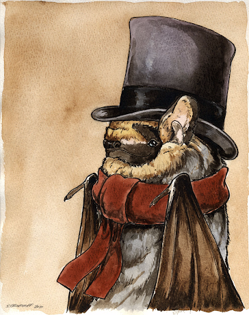 Cauldrons are governed by twin Moieties; Talkers and Movers, or we might say, Diplomats and Navigators. Talkers are the high-status public face of Chiropterae society and are what most think of when someone talks about the Bat-Men. Civilised, chatty, spectacle-wearing, multi-lingual, Pipe-Smoking, (possibly gas addicted), ambassadors, messengers, translators, occasional traders, middle-men and cosmopolitans. These are the bats that have their tents at the lowest part of the roost, right in the middle. (Their pungent pipe smoke rises up and makes their inferiors cough, and their pipe music drowns out the others).