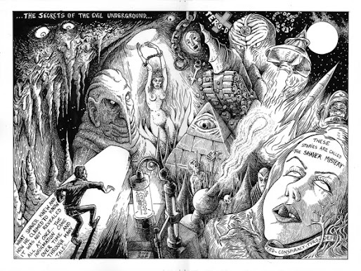 The Web Dogs are fed directly by the Bats and feed also on the insects which rise from the Guano pile below. Each settlements sub-species is a bit different; they are often altered and mutated by the energies of strange realities which the Chiropterae fly through and over in their great migrations, carrying the next generation of Web Dogs as eggs in their armpits. Some may be a little bit intelligent, others a little demonic, or a little whatever.