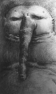 Dunsanay is perhaps the most brilliant and inventive ofall the writers shown and his tale 'The Fortress Unvanquishable Save forSacnoth', begins with a primal alliance of folktale and epic; a moving fortresssending forth evil dreams, its only counter, a blade hidden in the spine of adragon-crocodile. The only way to defeat the crocodile is to bait it for threedays straight, smacking its vulnerable nose, without being eaten, till itstarves. Then to melt the beast, draw forth the steel, and sharpen in upon oneof its eyes, the other eye being affixed to the pommel, where it will watch fordangers.
