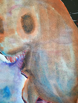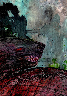 pjamesstuart; Some colouring follows the shading a form might have, other colouring is more like you poured thick liquid into a glass the shape of the creature and shined light through it. Other is like lines of energy within a beast. Do you know when you start out what you are going to do?