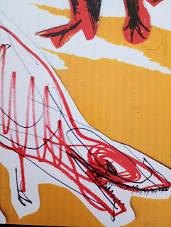 So yeah it was a whole process of curation , reacting and adjustment , to get the drawings to work with each textured page, there wasn't just in the way of a deliberate plan.