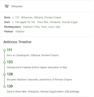 This gets more and more discomforting the more you think about the actual ages of Antinous and Hadrian when they first met, and about the fact that this is Hadrians One True Love.