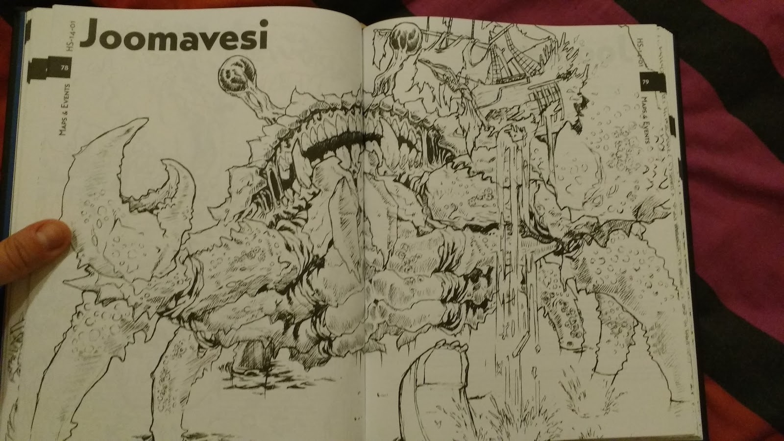 But another big element of this is that, whether you are running it from the book or from a tablet, you will still need a second, self-designed document, as a monster manual because none of these things have stats.