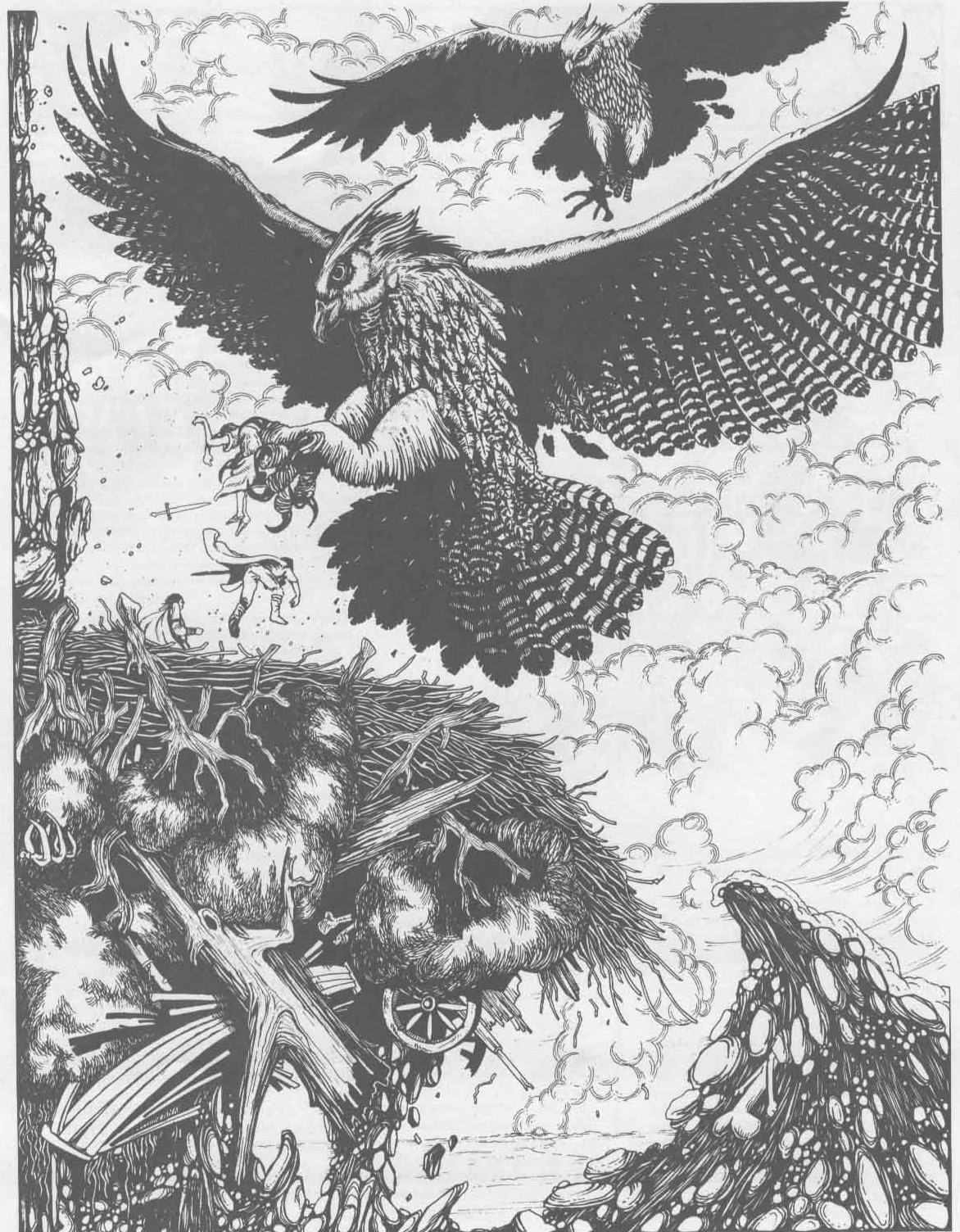 Kaeso Clovius CatoGladius (d6), Pilum (d6), Lorca Segmentum & Shield (2). A rational Roman Legionnaire. 15 Dardan Boar-WoeWhip (d6), Longbow (d8), Pack of Marked Cards. A needlessly inappropriate Boar. Cathleen CorePistol (d6), Whiskey. Insurrectionist Irish Washerwoman with a Hook Hand. Fenian sympathies. Ragnar BluetoothSword (d6), Bow (d6) Shield (Armour1). Riddle-Addict. Sometimes goes Berserk. 16 Stale HaggaiMusket (d8), Dog (STR 6, Bite (d3). Old, with a Wooden Leg and a shameful dog. Odbrict Bull-JoyFlintlock Pistol (d6), Net Trumpet, Fishing Pole. Talks of ‘Looking after Number One’ Never actually does this. A Bull with a heart of gold. Wulfred Half-WoodwoseHawthorn Club (d6). Roll a d6 three times on the ‘Curse of the Woodwose” table. Ignore any doubles. 17 Edwin Fool-Bear Halberd (d8). An extremely serious Christian with a good baritone, also a Bear. Seskia GroobOne Long Pin (d6, close). A Hideous Tobacco-Chewing Crone. Sir Colgrin Cador the PureA Knight magically transformed into an Orangutan. He cannot speak, but his heart is true. 18
