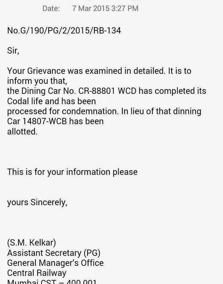 Badlapur resident Amol P Nikam, who works for Infosys, queried the Central Railway (CR) about the dining car and was told that the car's codal life was over and it has been replaced with another one. "But sadly, the new one is a normal pantry car," he lamented.