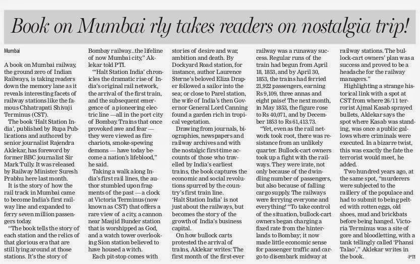 ‘Halt Station India: The Dramatic Tale of the Nation’s First Rail Lines’ by Rajendra B. Aklekar, Rupa Books, Delhi, 2014.Sometimes when we travel in the trains, we usually think of how the railway made its ways in India? What was the story of the first rail line of the country? How the project was made and it progressed? What were the challenges before the mission of laying lines? What were the reactions of local people towards this strange happening? How this network of track spread all around the country. The answers of some of these various questions is ‘Halt Station India: The Dramatic Tale of the Nation’s First Rail Lines’ by Rajendra B. Aklekar. As railways enthuse, he narrated the story of advent and development of rail lines particularly in Bombay in this book. Sir Mark Tully rightly appreciated the book in the forewords that “Rajendra B. Aklekar’s meticulous research- and his scholarship which enables him to interpret his finding- throws new light on the way those railways were built- the laying of the lines, why they were laid where they were laid, how the demands on them changed and how they met those demands.” He collected facts from various sources and created this wonderful book by putting them together.The first Chapter ‘The Story of an Experimental line’ of the book is an account of emergence and materialization of the idea of first rail line (not only) in India (but also in Asia). Though the activities related to the steam engines were taking place in India even before 1850 when architect of the first line of India James John Berkley landed in Bombay but the first formal passenger train service was flagged off on 16th April 1853 from Bori Bandar (known as VT) to Thana hauled by Falkland (the locomotive named after Bombay governor of the time Lucius Bentinck Cary, the tenth Lord Viscount of Falkland). Some other engineers also joined Berkley’s team at the site but couldn’t acclimatize with the weather condition and even succumbed to the death. The construction of the line was really a big challenge in a difficult terrain.
