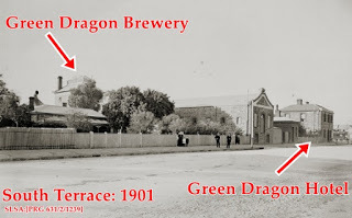 Green Dragon Hotel circa 1940 - SLSA: B 9458The Green Dragon Hotel opened in 1858 on the corner of South Terrace and Pulteney Streets. It was built for Mr John Mitten and contained eight rooms, stockyard and stables. Mitten, originally from Hereford England, passed away in the hotel in 1859 after a short illness. The hotel was left to his niece Mary Cant.The hotel has many additions made over the years. The most substantial being extensions in 1891 and 1898. A balcony was added in 1924.