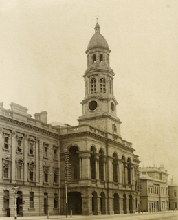 The Adelaide General Post Office was completed in 1872. Ittook another three years before the clock was installed in 1875. The AdelaideTown Hall was opened in 1866. It was 69 years later in 1935 that former LordMayor, Sir J Lavington Bonython donated a clock to be placed in the tower. Theelectric clock was switched on in 1935.