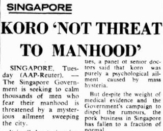 1967 'SINGAPORE KORO 'NOT THREAT TO MANHOOD'', The Canberra Times (ACT : 1926 - 1995), 8 November, p. 6. , viewed 27 Jul 2018, http://nla.gov.au/nla.news-article106...