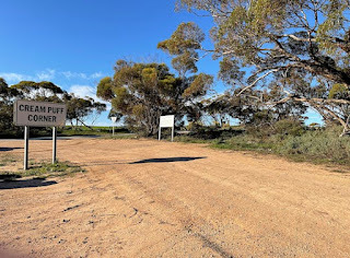 Cream Puff Corner is located at Upper Yorke Rd, Wokurna,near Port Broughton. The location got its name from two returned servicemen,Cedric Witty and David Richards, who began a carrying business at this locationin 1946. According to a sign at the location,