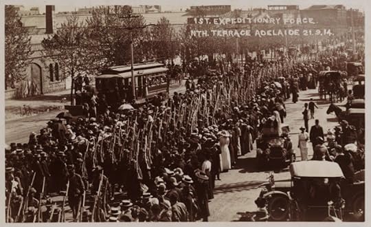 A military band leading South Australian soldiers as they make a farewell march along King William Street, Adelaide before going overseas in World War I; large crowds line the roadside on both sidesSLSA: [PRG 280/1/3/339]April 23, 2024