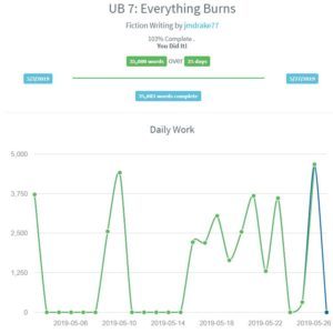 Again, you can see that I'm complete rubbish at the beginning. I believe I took because a friend was staying with us for a few days and then I was working on edits for the Unbreakable Bonds book. But this one saw more consistency in the last 10 days because I was sprinting every day with friends. They helped to hold me accountable to hit my word goals each day. It felt great to hit my goal before 2 pm each day. And it reminded me to stay focused on the days that I was still working in the evening.