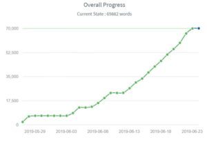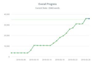 This one proves that each word helps to fill the bucket a little bit more. Each word gets you one step closer to the top of the mountain. This one is my favorite chart because I can set smaller goals of hitting 20,000 words total and then 25K, and 30K.