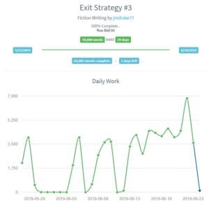 Then, I have the third book in the Exit Strategy series, which I just finished the rough draft for over the weekend. This book had a rough draft goal of 70,000 words because it's a solo project.