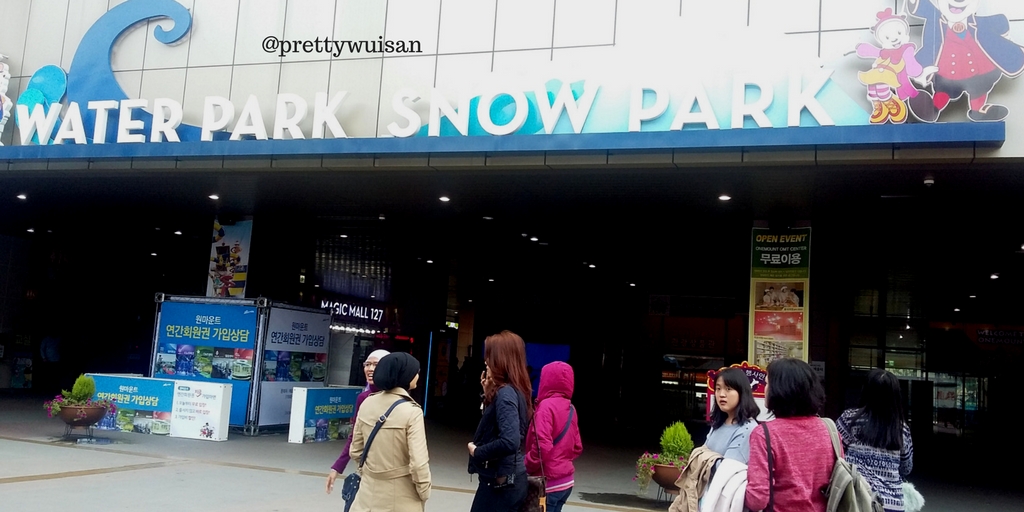 Assalammu’alaikum, sebenarnya udah lama banget mau nulis ini, tapi baru ada niat dan waktu sekarang haha. Jadi ceritanya perjalanan ini dulu saya lakukan di tahun 2015. Bagi yang belum tahu, tahun 2015 lalu Alhamdulillah saya berkesempatan ke Korea Selatan gratis karena memenangkan lomba menulis novel yang diadain sama Grasindo (Kompas Gramedia) yang bekerja sama bareng Korea Culture Center Indonesia (KCC Indonesia), Korea Tourism Organization Indonesia (KTO), sama Hanin Post. Perjalanan itu sampai sekarang nggak bisa terlupakan buat saya. Salah satunya pas saya bisa main sama salju, padahal di Korea Selatan lagi musim gugur! Wah, jadi bisa banget nih ngerasain salju di Korea Selatan tanpa harus nungguin musim dingin tiba. Mau main di musim semi, musim gugur, bahkan musim panas pun bisa! Terus kok bisa sih main salju bukan di musim dingin? Soalnya Korea Selatan sendiri punya banyak tempat wisata yang bertema es dan salju, salah satunya itu Onemount Snow Park yang ada di Ilsan, tepatnya di Hallyu World. Waktu tempuhnya cuma sejam dari Seoul. Waktu itu gedung Hallyu World-nya lagi dibangun dan udah keliatan megah. Kayaknya sekarang bagus banget lokasinya >.<. Btw ini lokasinya masih sepi, soalnya masih pagi. Sekitar jam 9.30 waktu Korea Selatan.