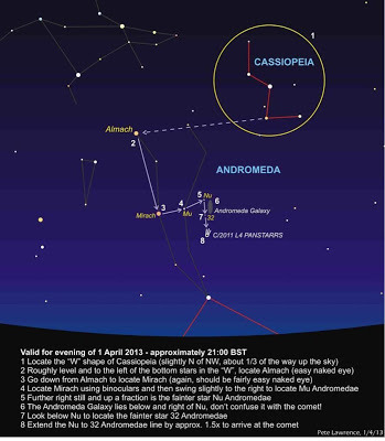 ... if you live in the northern hemisphere, anyway. I saw it from my doorstep last night, through the glare of nearby street lamps, using 8x40 binoculars and this map from @VirtualAstro. (Click to enlarge; follow @VirtualAstro or your local equivalent outside the UK for #PanSTARRS updates.)