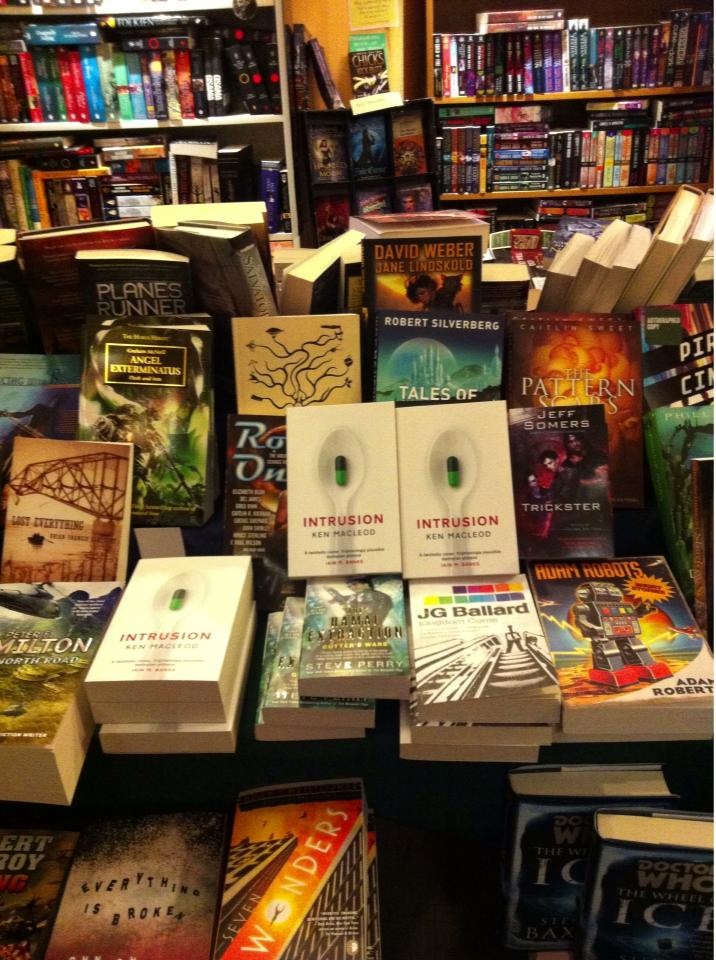 My 2012 novel Intrusion is now available in paperback. As you can see from my friend George Berger's photo of a display in the Uppsala English Bookshop, copies are already out in the wild and have made it as far as Sweden.I'm delighted, and honoured, that the book is on the Best Novel shortlist for the British Science Fiction Association's BSFA Awards: