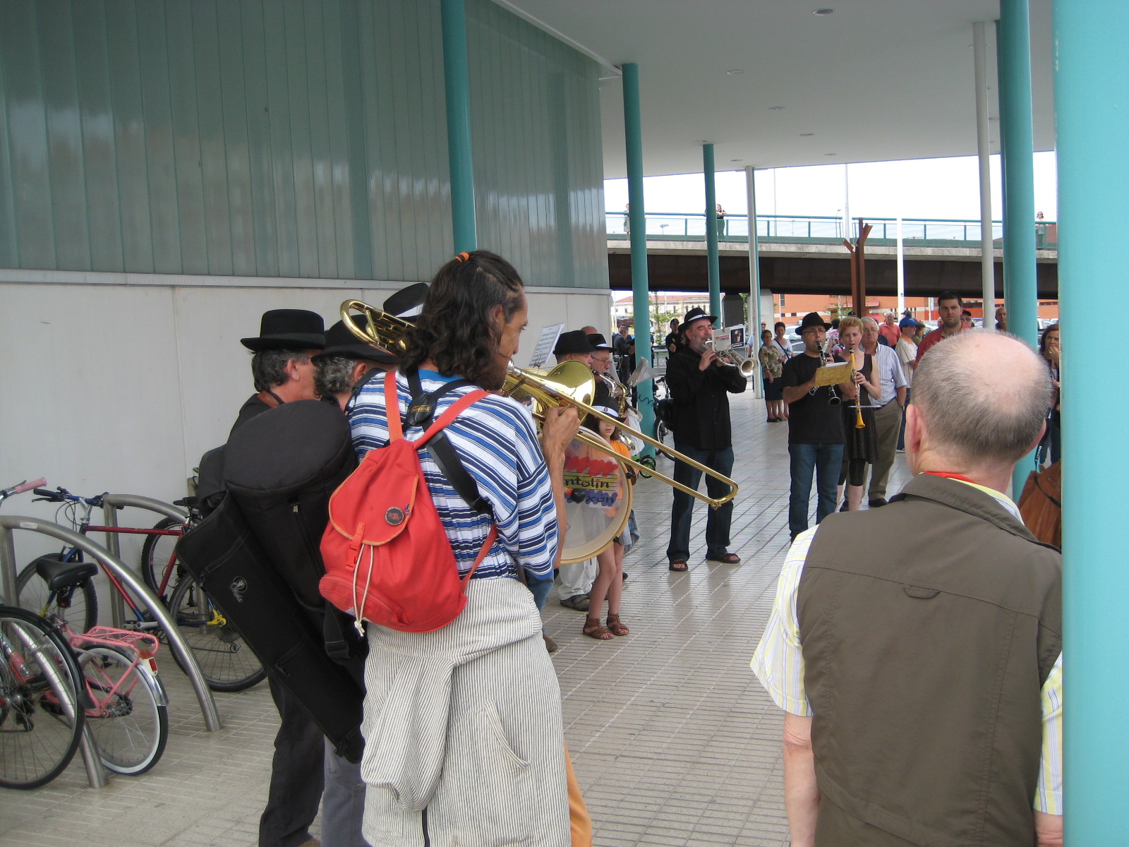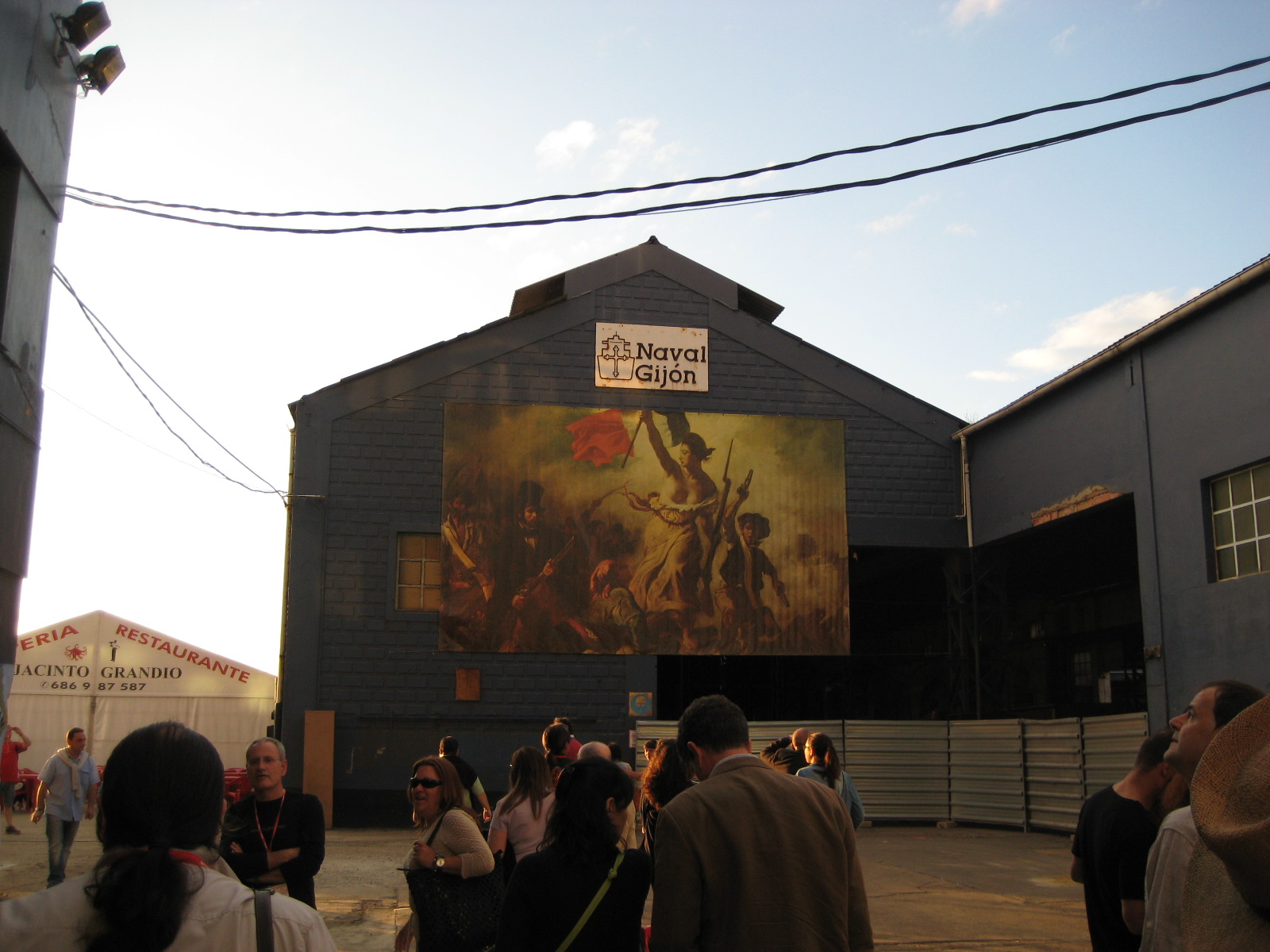 This misunderstanding sorted, we arrived late at Mieres, where Paco Ignacio Taibo II, legendary crime writer and festival director, led a group of writers in solidarity T-shirts out to a tumultuous welcome from the mayor and a dozen likewise T-shirted miners. Songs were sung, to the accompaniment of a bagpiper and a drummer in Asturian costume, who then led writers, mayor and miners through the quiet town. After the mayor had rallied us to a brief sit-down in the main street, we arrived at a courtyard of laden tables. We might have done the lunch justice in two hours. We had twenty minutes and made the most of them. Then it was back on the train and down from the hills to the coast, and Gijón, where a brass band at the station played the Internationale as we climbed on the bus.