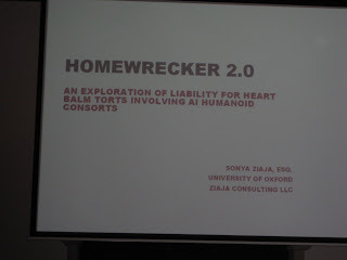 There was much fun to be had: social robotics is a new and thriving field, looking at the integration of robots into society through a cluster of lenses, from the technical through the sociological to the cultural. Papers presented ranged from empirical studies of human-robot interaction to such wonderfully speculative flights as the pressing question of whom (or what) to sue if a sexbot AI steals your partner's affections.
