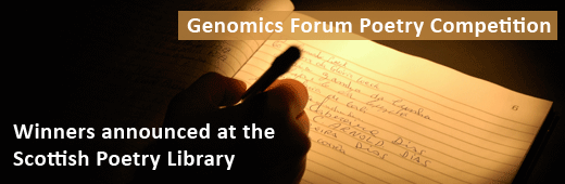 The winners of the Genomics Forum's poetry competition, launched last year by Pippa Goldschmidt, will be annnounced - and will be giving readings of their work - on Saturday afternoon at a free event, 2- 4 pm at the Scottish Poetry Library. All welcome.