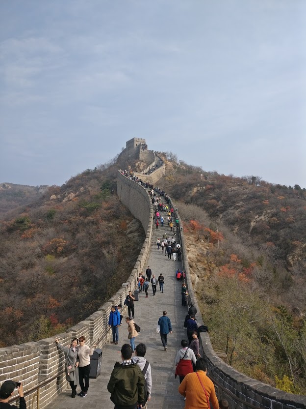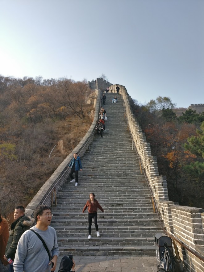 On Wednesday Fan took Carol and I, Rob and Jim, and Alice to the Great Wall. The views are sweeping, the climb exhilarating, the Wall astonishing. We had a good day for it, clear and sunny and above all dry – climbing a succession of steep ramps and steeper stairs was challenging enough in these perfect conditions, and must be outright scary in the wet. At some parts it's like clambering on a roof. Naturally we were overtaken at various stages by old folk and small children.