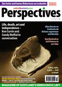 That current issue, dated Autumn 2014, aptly enough leads with the Scottish independence referendum, in a long and thoughtful editorial that seeks possibilities for progress in either of the possible outcomes. Other articles survey the Great War, feminism, Piketty, the arts and independence, and more, all in some depth and from contributors who know what they're about: Shonagh McEwan, Meaghan Delahunt, David Purdy ... You get a lot of reading for your £3.