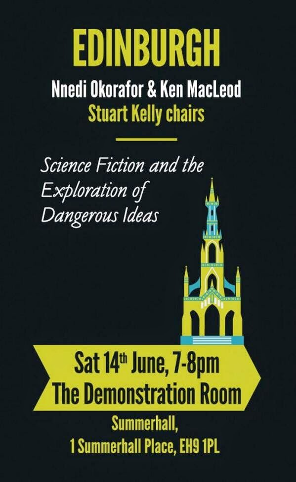 Nnedi Okorafor (Who Fears Death, winner of the World Fantasy Award 2011) and Ken MacLeod (Intrusion and most recently Descent) will discuss their favourite pieces of provocative SF from their own works and others followed by an audience Q and A, and signings.