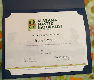 Happy news: I received my Alabama Master Naturalist certificate in the mail. Yay! It took me nearly two years to complete the program. The lectures and tests were the easy part; what slowed me down was the volunteer hours and the required field days, which were challenging to fit into my schedule! But I did it! And I learned so much along the way, like:Alabama ranks 5th in the country for species biodiversity. States 1-5 in order: California, Texas, Arizona, New Mexico, Alabama!