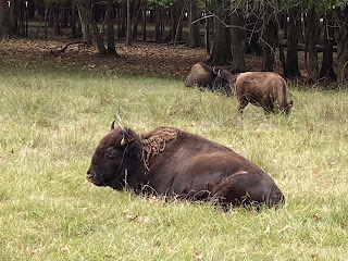 But then, a bit further along the drive, a herd of bison were resting in the grass, paying no attention to me whatsoever.