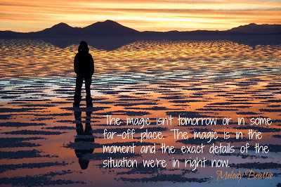 "The magic isn't tomorrow or in some far-off place. The magic is in the moment and the exact details of the situation we're in right now." - Melody Beattie