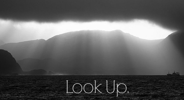 Isn't that wonderful?! In part, because it can mean so many things... look up with pride, be bold, meet the world head on, give thanks, praise... LOOK UP.
