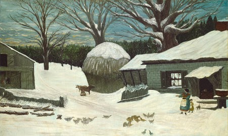 Today's piece is "New England Farm in Winter" by unknown 19th Century American artist.