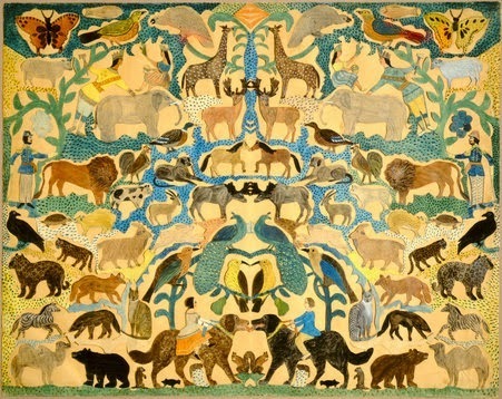 Next, I offer you poem #9 of ARTSPEAK!, my Poem-a-Day Project for National Poetry Month 2015, in which I am writing from images found in the online collections of the National Gallery of Art and focusing on dialogue, conversations, what does the piece say?Today's piece is "Cutout of Animals" by an unknown 19th Century American artist.