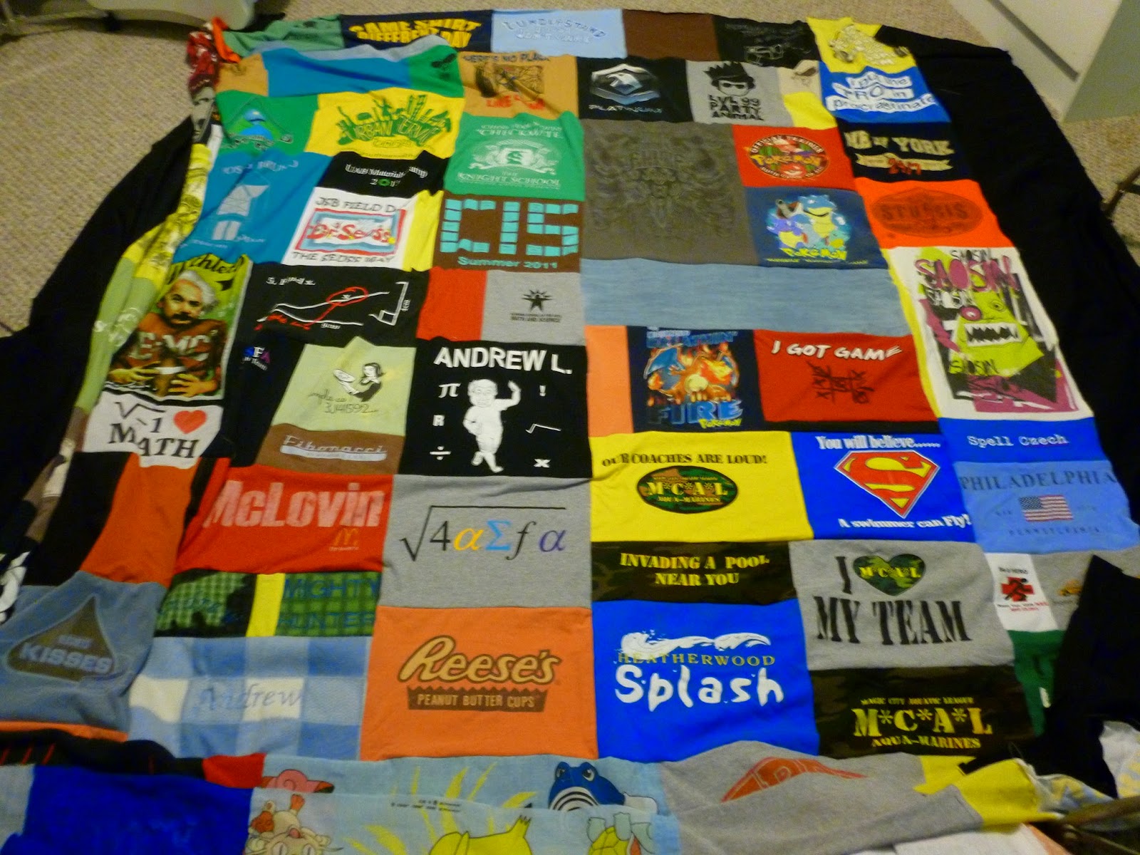 MEANWHILE, here is the monster that is our son Andrew's quilty graduation gift! It's king-sized and contains so many of the things he's been passionate about...from Pokemon to swim team to McDs to funny sayings (thank you, Mental Floss!). I chose black minky for the back (he LOVES soft textures) and a rainbow-ish print for the binding. Can't wait to see how it comes together!