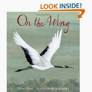 Today I am taking a break from all that for just a minute to share with you a lovely book ON THE WING by David Elliott, illus. by Becca Stadlander. It's contains short vivid poems about birds! So, bird lovers will love it, and people who aren't bird lovers will BECOME bird lovers. :) I don't think poets will ever NOT be inspired by birds, and rightly so! I'd like to share three of these poems with you today: