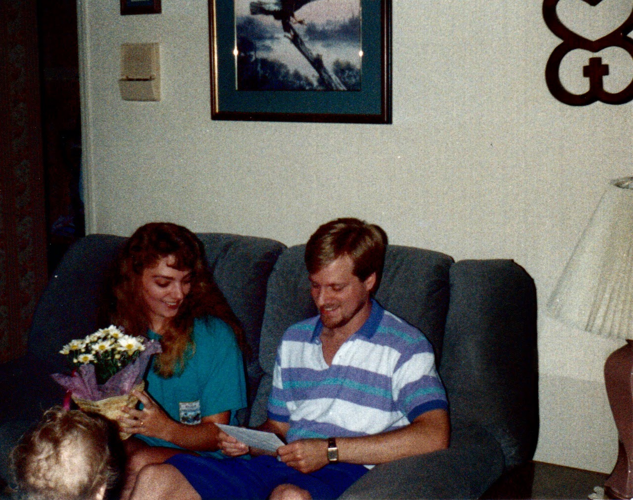 A pic of us at my parents' house, just after we got engaged. 1990Nearly 24 years ago when we went on that first date I remember how after we'd enjoyed our meal, Paul pulled from his pocket a newspaper clipping of the movie schedule. (Back in the day when we used the newspaper for such things!) He asked me what I wanted to see, and I, without hesitation, pointed to DRIVING MISS DAISY. So that's what we saw. Of course it's a story about the unlikely friendship between Miss Daisy and her driver Hoke. It's one of only two films we watch again every single year. (The other is IT'S A WONDERFUL LIFE.)Paul is not my driver (okay, sometimes he is!), but he is definitely my best friend. I'm so grateful.