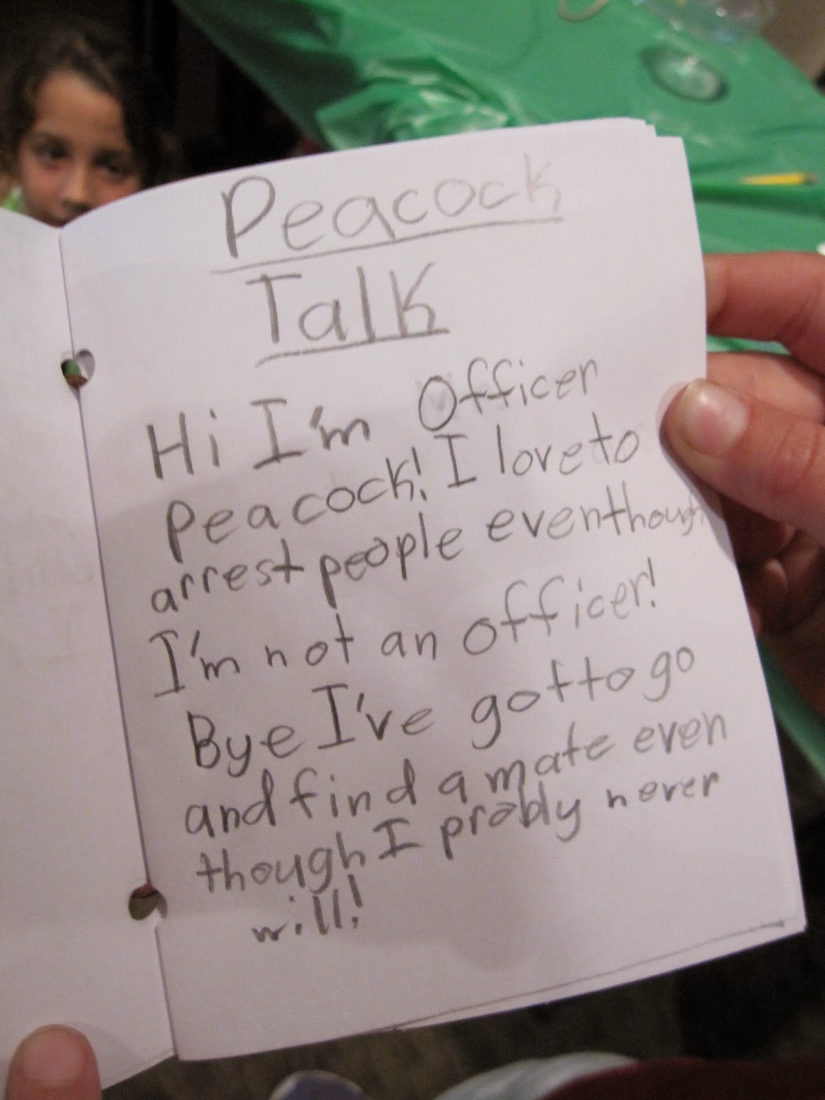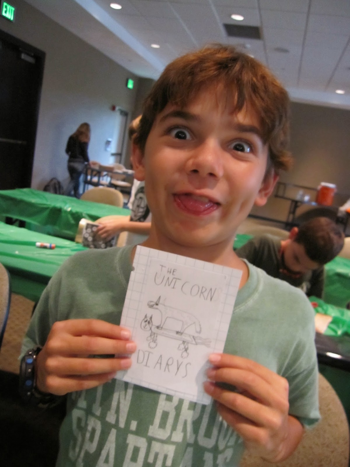 it was time for Safari Sketchbooks. :) We had a pile of old National Geographic Kids magazines, and kids selected a picture of the animal they wanted to write about. They cut and pasted the picture to the cover of their Sketchbooks, added the filler paper, and used leather cording to bind it. And then they WROTE, using the same prompts, but for their own individual animal.Funny thing: unicorns came up A LOT. Wonderful boys. :)