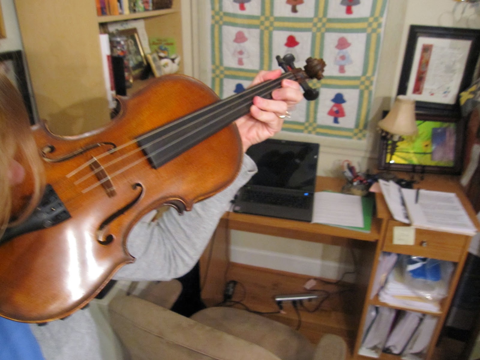 So. Why the fiddle? Maybe because of Pa in the Little House books. Maybe because of THE FIDDLER ON THE ROOF, a show I adored as a teen. Maybe because I love the cello, but it's SO BIG, and I travel a lot and need something portable. Maybe because I love bluegrass music and all those old folk tunes. I guess there are a lot of reasons! And I am loving it!