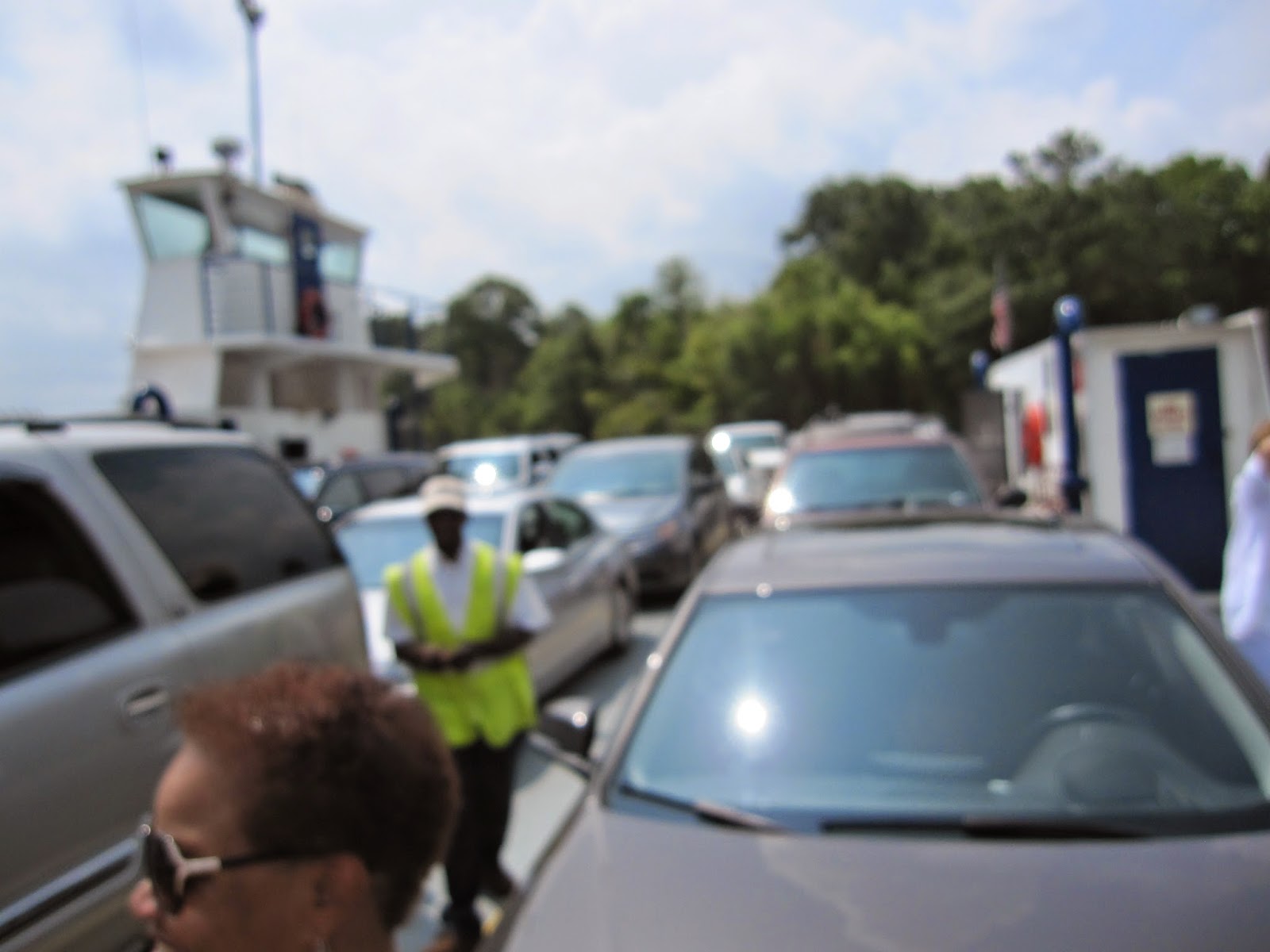 Eric, Paul, meI have never seen the ferry so FULL, although the quilters told me a long time ago that she'd once seen 17 cars on the ferry. Our load was 15 (I think!).