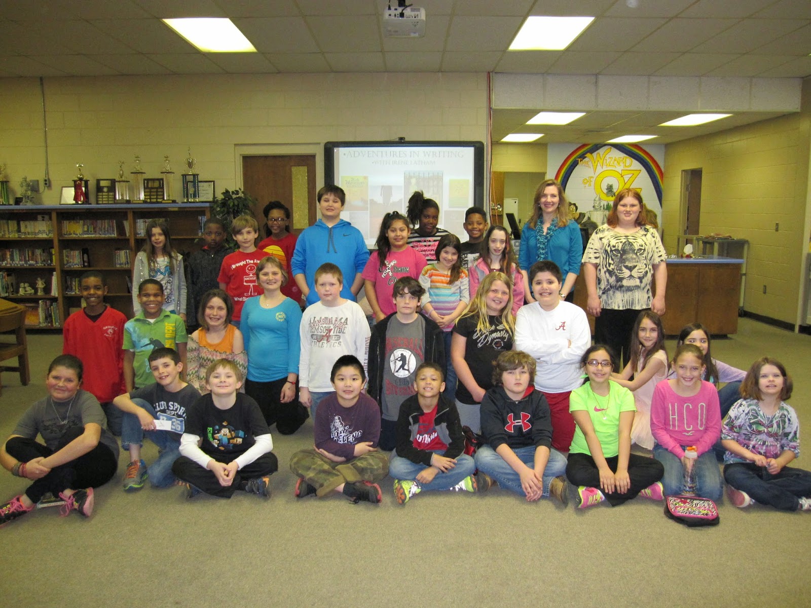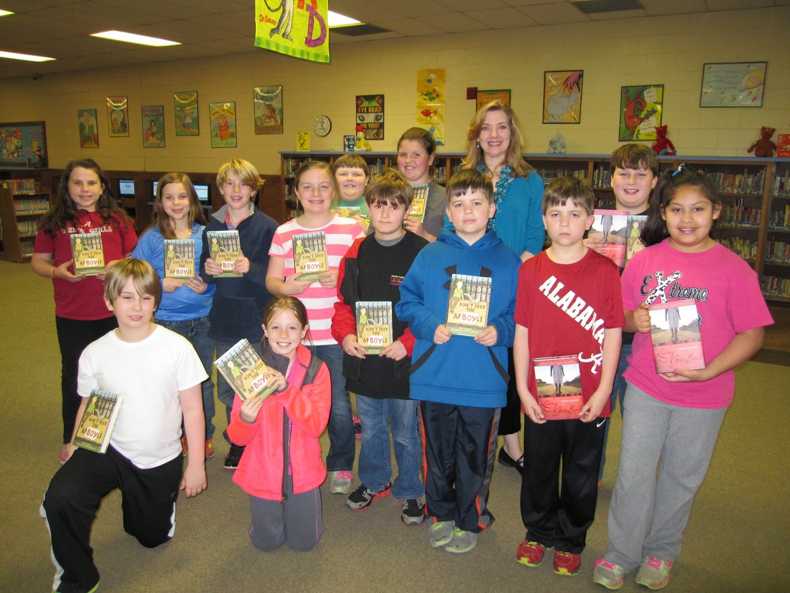 Last week it was my good fortune to visit with 4th graders and the Reading Club at John S. Jones Elementary School in Gadsden, Alabama. We had a great time, and I was warmly welcomed by librarian Lisa Richards and the entire faculty and staff at the school. Carol York, librarian at Gadsden Public Library brought pizza for the group (and whose lovely father helped fund the visit - thank you, Mr. Roark and grandson Alex), and I enjoyed chatting with the kids, who were wonderful and curious and asked great questions. Thanks to everyone who made it a great time!Now for those hard questions: