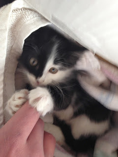 Our oldest has been wanting a kitten of his own... and now he has one! Isn't she cute?!