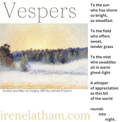 This week's ArtSpeak: Light poem is a prayer for light that is fading...and for deer! If you look really close, you'll see there's a herd of deer in that fog. Cool, huh? Thanks so much for reading!